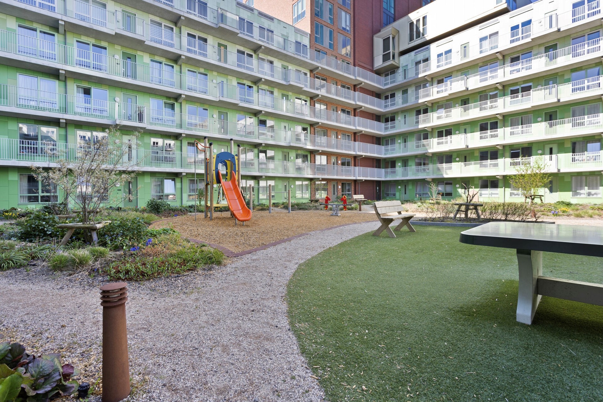 Er is een enorme gemeenschappelijke binnentuin, een groene oase waar je samen kunt komen met andere bewoners, en dat midden in de stad!
