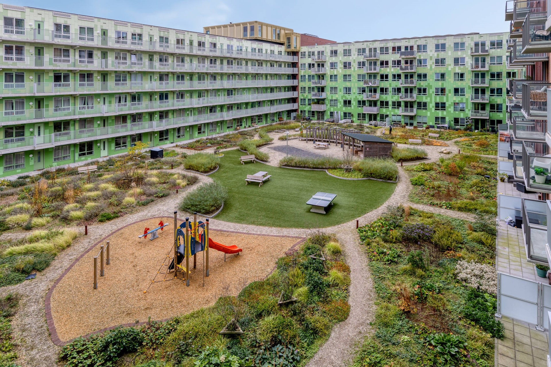 - Gemeenschappelijke, groene binnentuin met speel- en zitgelegenheden