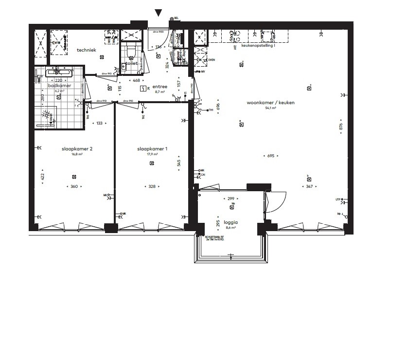 Daarnaast beschikt het appartement over een praktische technische-/bergruimte met aansluitingen voor een wasmachine en wasdroger