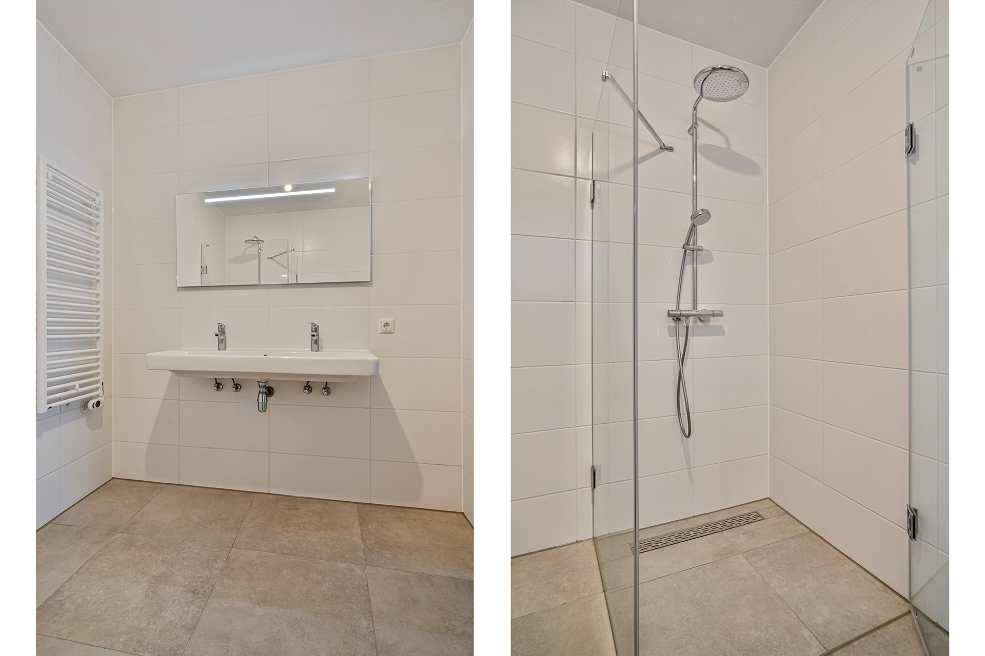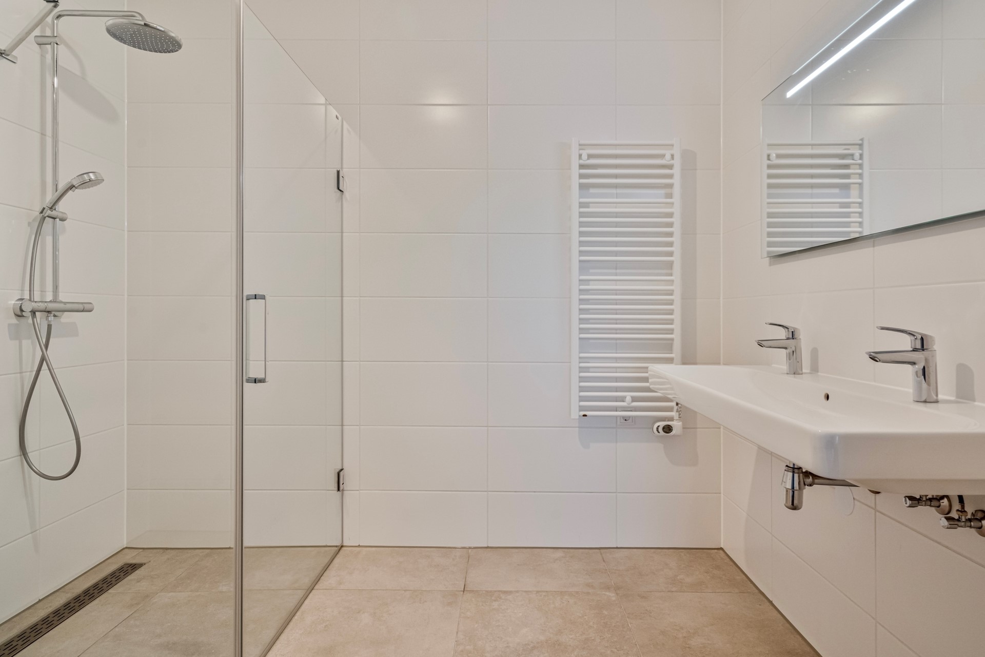 Er zijn twee ruime slaapkamers, een aparte toiletruimte en een volledig afgewerkte badkamer met een dubbele wastafel en een inloopdouche.