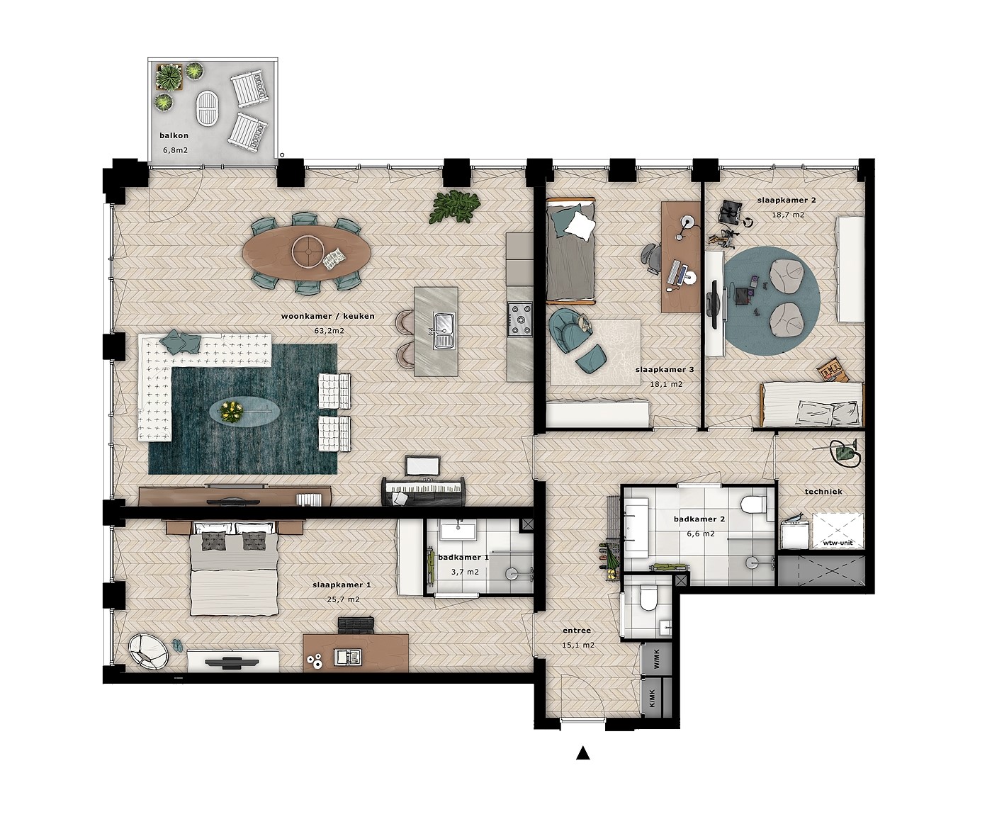 Een bijzonder pluspunt is de centrale binnentuin: een groene en rustige plek waar je even kunt ontspannen, buren kunt ontmoeten of kinderen veilig kunt laten spelen.