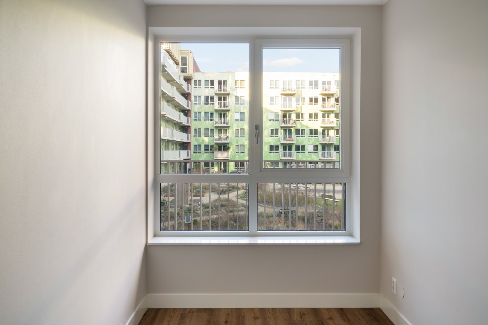 Het ruime balkon biedt overdag volop zon. Tevens beschikt dit appartementencomplex van een veelzijdige binnentuin. Een rustige plek om even buiten te zitten of contact te maken met de buren.