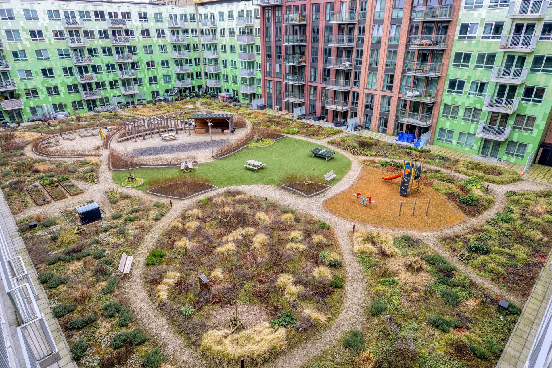 De gemeenschappelijke entree is verzorgd en afgewerkt met kwalitatieve materialen, wat bij binnenkomst direct een nette indruk geeft. Verder is er een goede onderhouden binnentuin in het complex aanwezig.