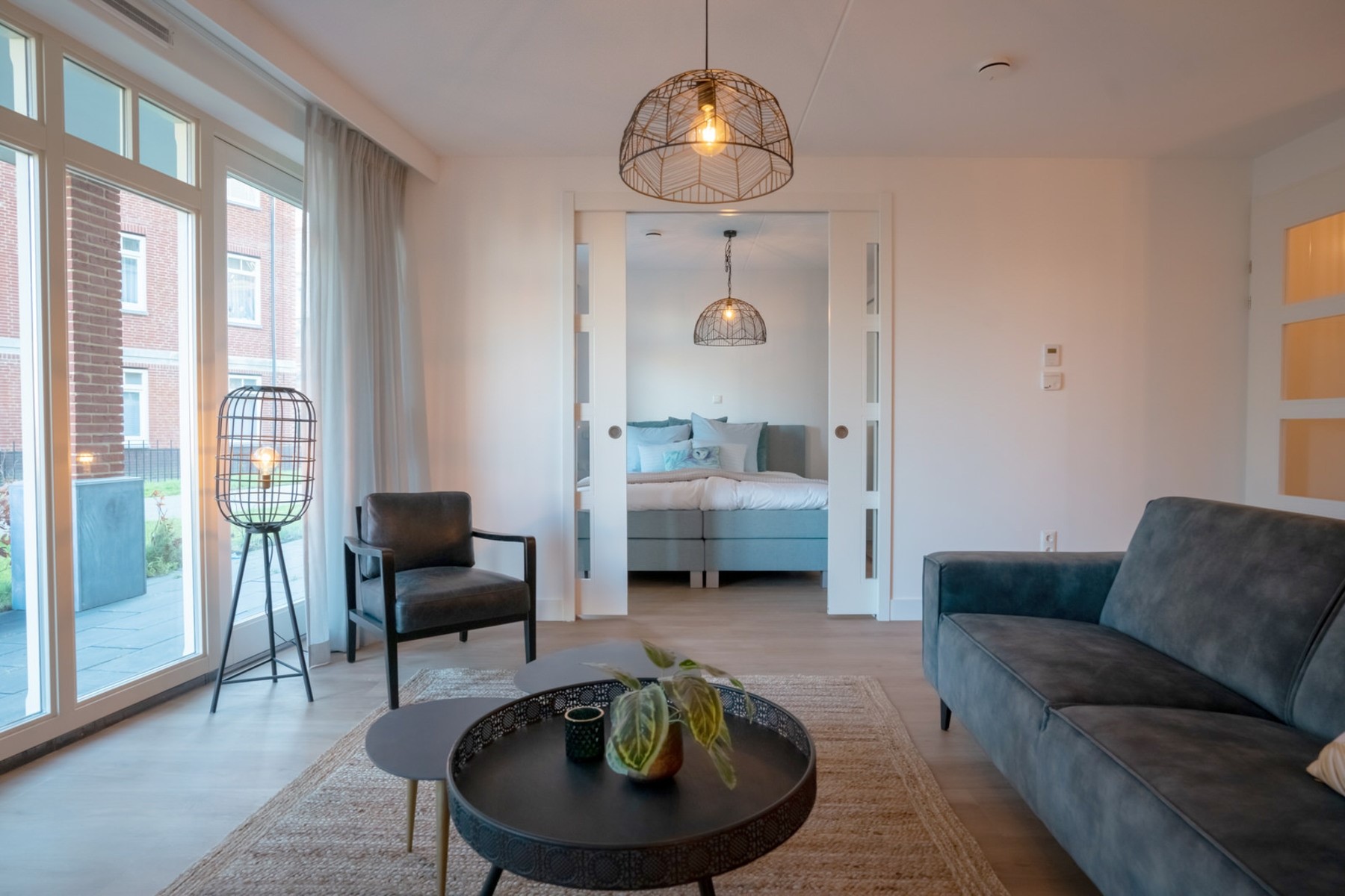 De slaapkamer is aan de woonkamer gelegen. De slaapkamer kan afgescheiden worden van de woonkamer door sfeervolle ensuite deuren. Aan de voorzijde van de woning bevindt zich nog een tweede kamer met een wasruimte waar ook een kluis aanwezig is. Het terras is te bereiken vanuit de woonkamer, georiënteerd op het noordoosten.