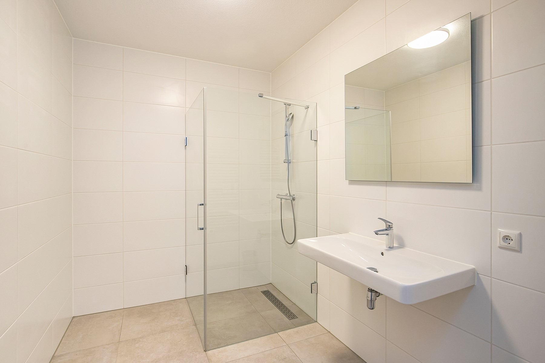 De badkamer is uitgerust met een wastafel en een inloopdouche. De ouderslaapkamer heeft een tweepersoonsbed en een grote kast. De tweede slaapkamer kan perfect gebruikt worden als studeerkamer. Een apart toilet is aanwezig.