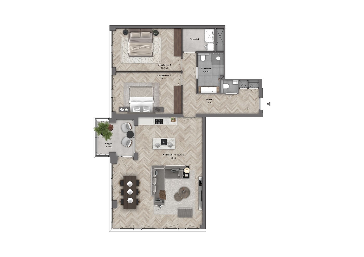 Dankzij de gunstige hoekligging en de grote raampartijen stroomt het daglicht hier rijkelijk naar binnen. De royale woonkamer voelt direct ruim en uitnodigend aan en biedt volop mogelijkheden voor een gezellige zit- en eethoek. De moderne open keuken met kookeiland vormt een echte eyecatcher en is van alle gemakken voorzien – een heerlijke plek om te koken én samen te zijn.