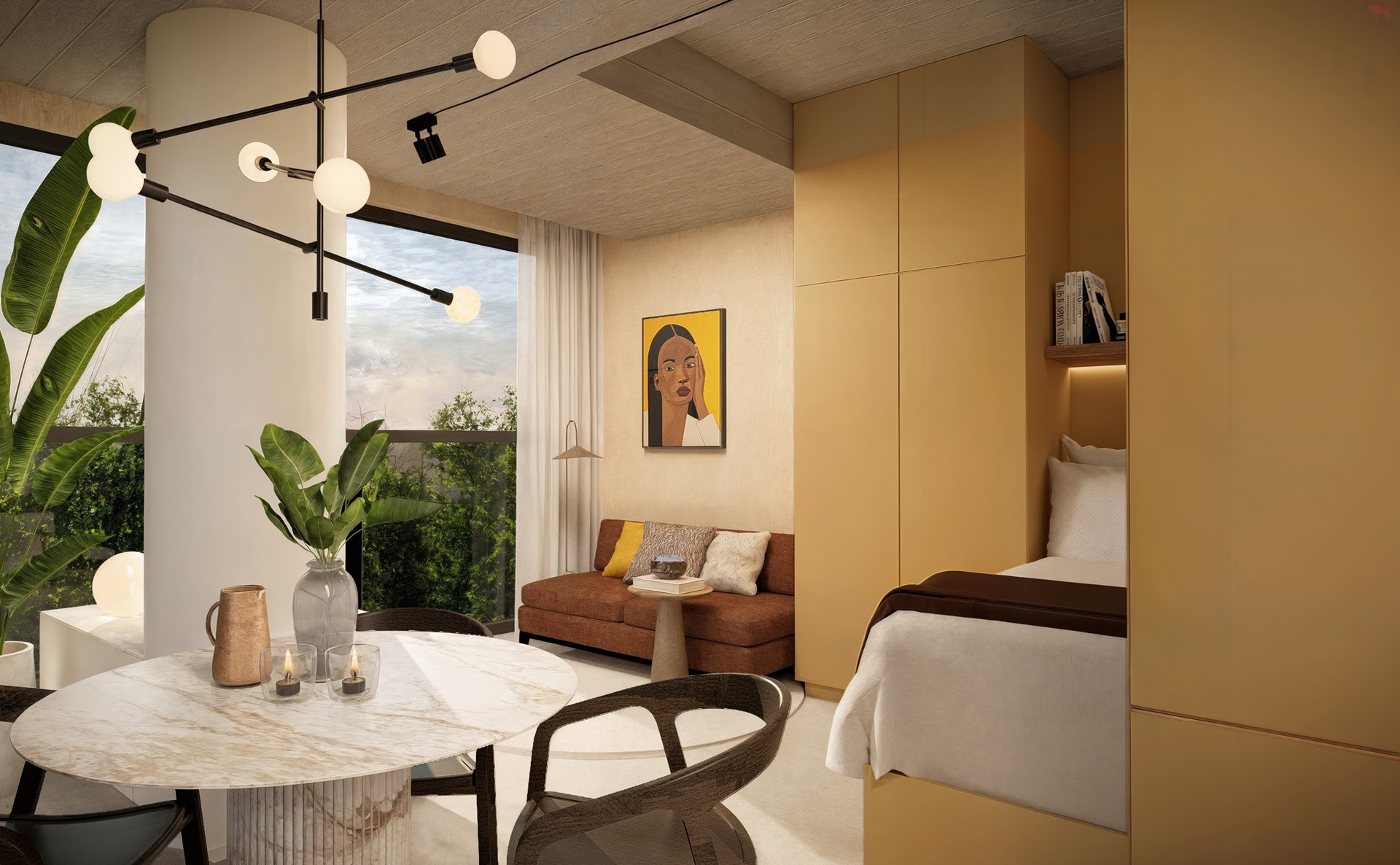 Dit moderne studio-appartement (Type E) in de Bolstoren is slim ingedeeld en biedt alles wat je nodig hebt voor comfortabel wonen.