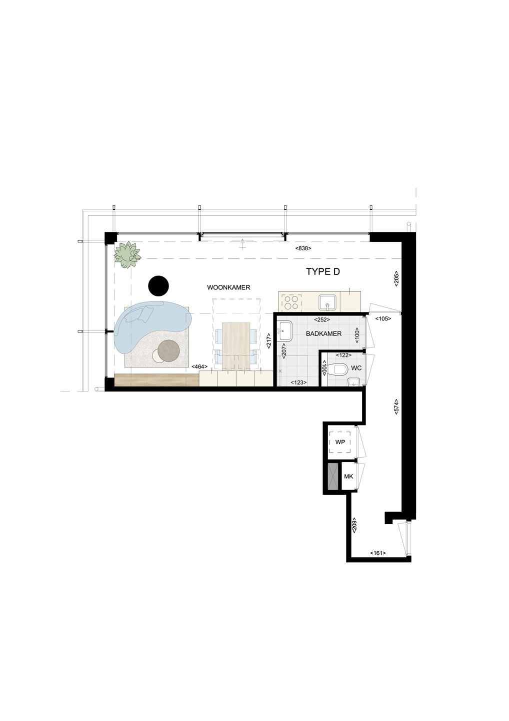 Onderdeel van nieuwbouwproject Bolstoren Studio-appartement - type D